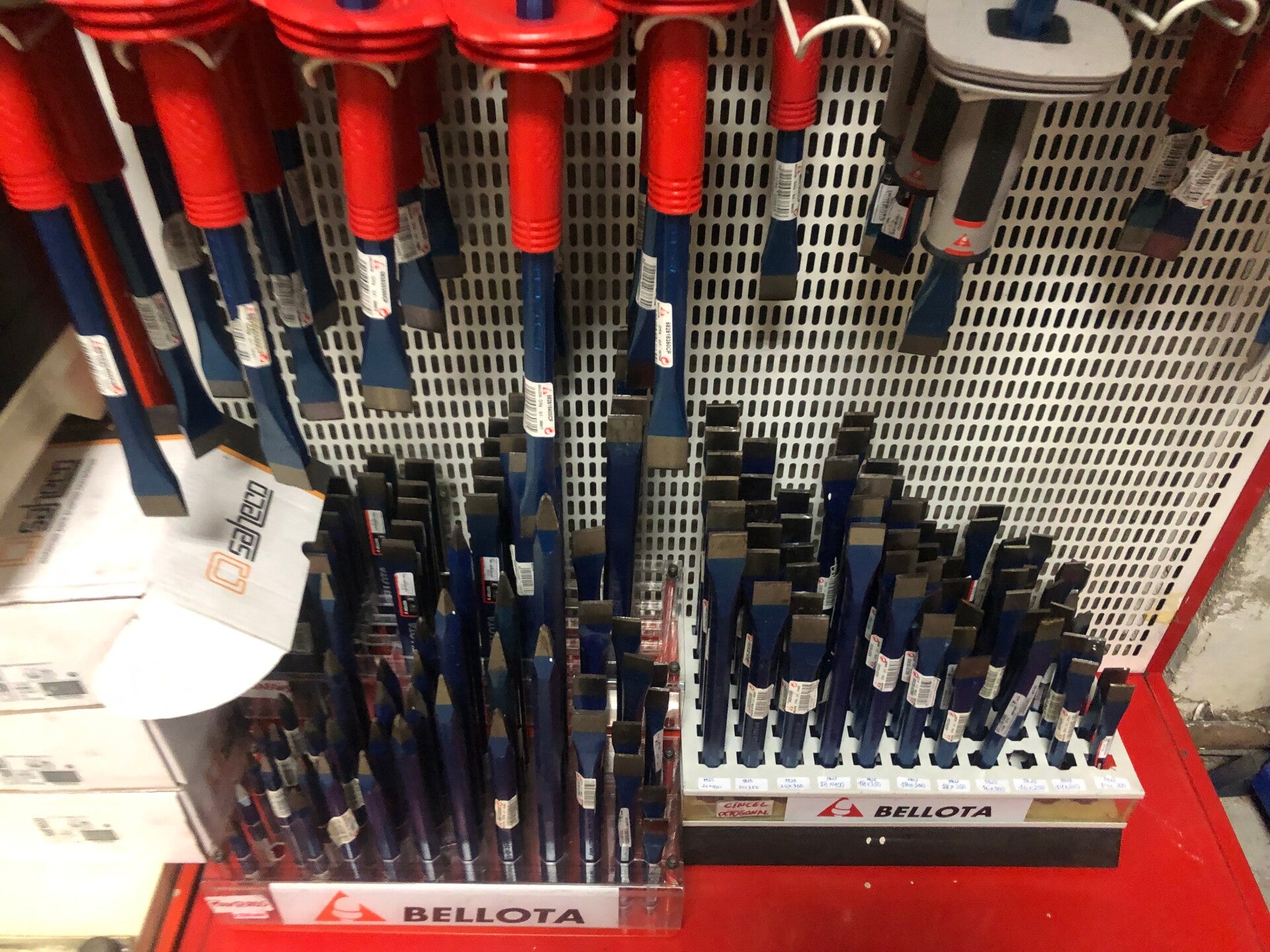 Tenazas, alicates, destornilladores, brocas, mordaza, escaleras de distintas alturas, ruedas y ganchos, limas, escofinas, llaves, mangos, sierras y serruchos, tornillería etc.